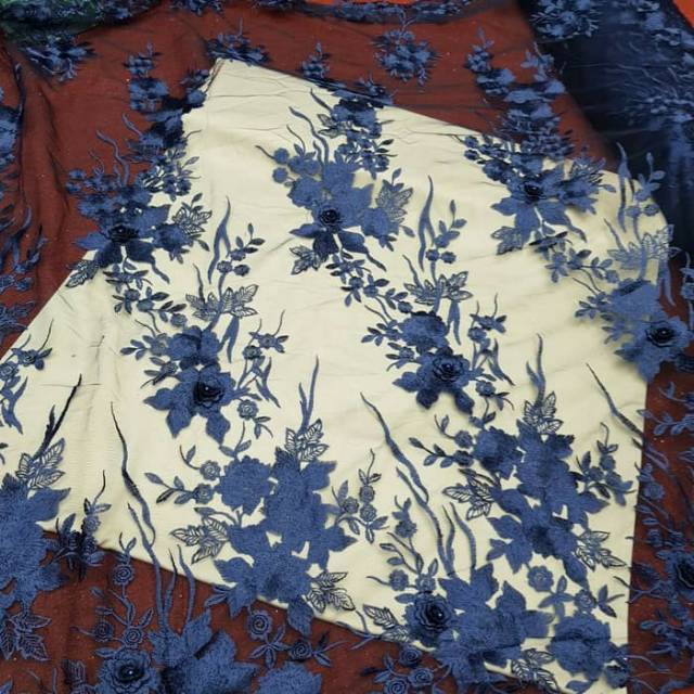 Jual Promo Kain Tulle Brokat Bunga Timbul Impor Korea Premium Navy Kota Surabaya Toko Moro Joyo Tokopedia