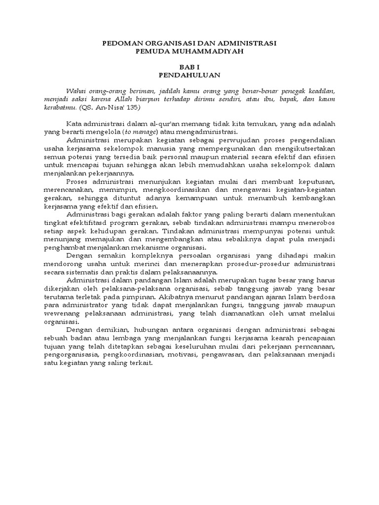 Pedoman Organisasi Dan Administrasi Pemuda Muhammadiyah Libre
