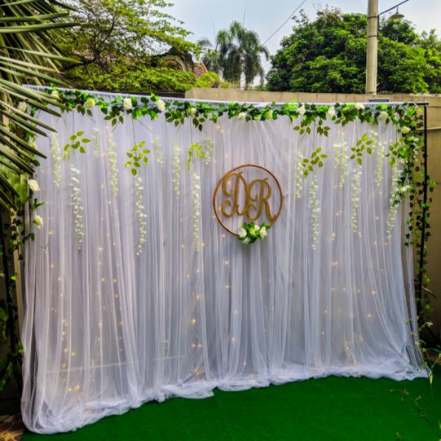 Dekorasi Backdrop Lamaran Tunangan Nikahan Aqikah Paket A Putih Tulang Lazada Indonesia