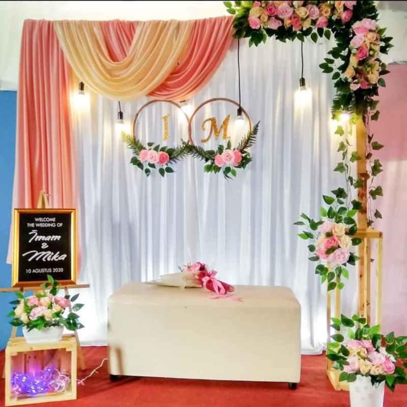 Dekorasi ini hanya membutuhkan kain tile pigura dan sejumlah rangkaian bunga yang disematkan. Backdrop bunga lamaran Berikut ide ciamik aplikasikan floral backdrop ke dekorasi lamaran atau pertunangan kamu. Sewa dekorasi backdrop lamaran akad pernikahan area Jabodetabek Rp1000000.