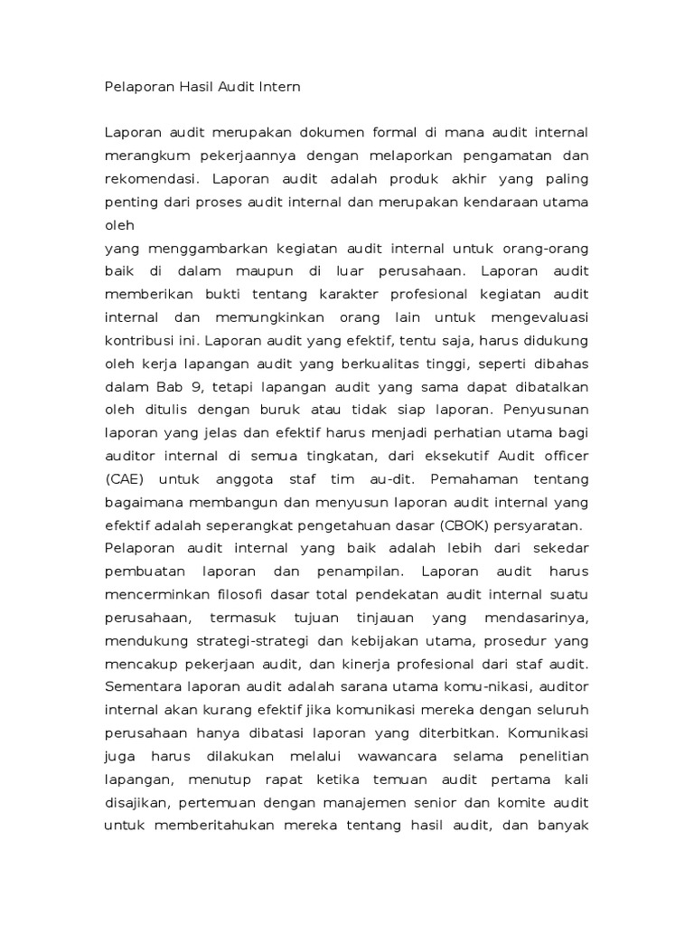 Bentuk laporan hasil audit pada dasarnya memuat sebagai berikut. Indeks Implementasi SPM. Pelaporan Hasil Audit Intern Laporan audit merupakan dokumen formal di mana audit internal merangkum pekerjaannya dengan melaporkan pengamatan dan rekomendasi.