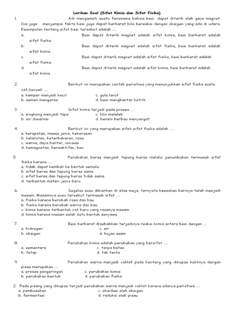 214249684 Latihan Soal Sifat Kimia Dan Sifat Fisika Docx