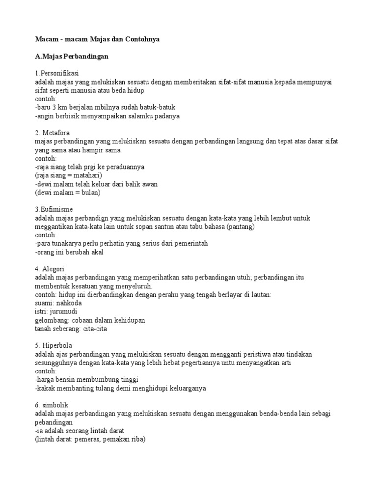 59 Macam Macam Majas Lengkap Beserta Pengertian Dan Contohnya