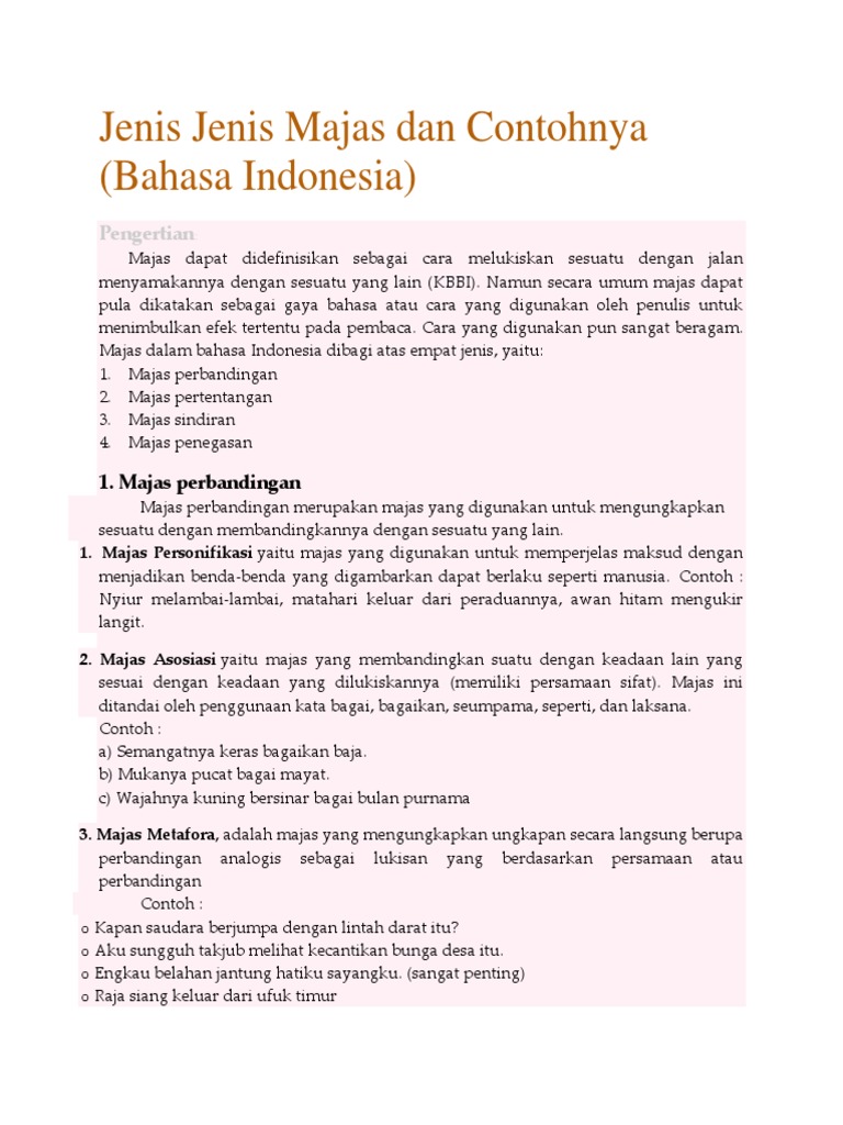 Majas Pengertian Jenis Dan Contohnya Lengkap