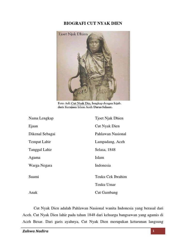 Biodata Cut Nyak Dien Dalam Bahasa Inggris Kami