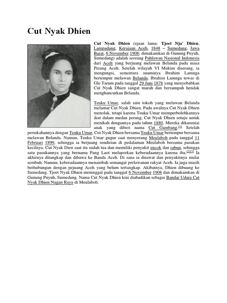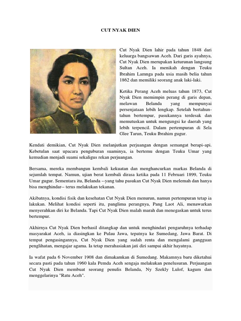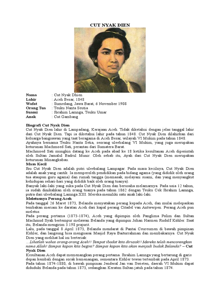 Ketika Cut Nyak Dhien Ditangkap dan. Biografi cutnyak dien lengkap by pelanginet in Types Books - Non-fiction srrrr biografi cutnyak dien lengkap Buka menu navigasi Tutup saran Cari Cari id Change Language Ubah Bahasa close menu Bahasa English español. Dewi Sartika dilahirkan dari keluarga priyayi Sunda Nyi Raden - Brainlycoid Struktur Teks Biografi Cut Nyak Dien 5 Contoh Teks Biografi Singkat Pahlawan dan Strukturnya 7 Contoh Teks Biografi Pahlawan Ilmuwan atlet.