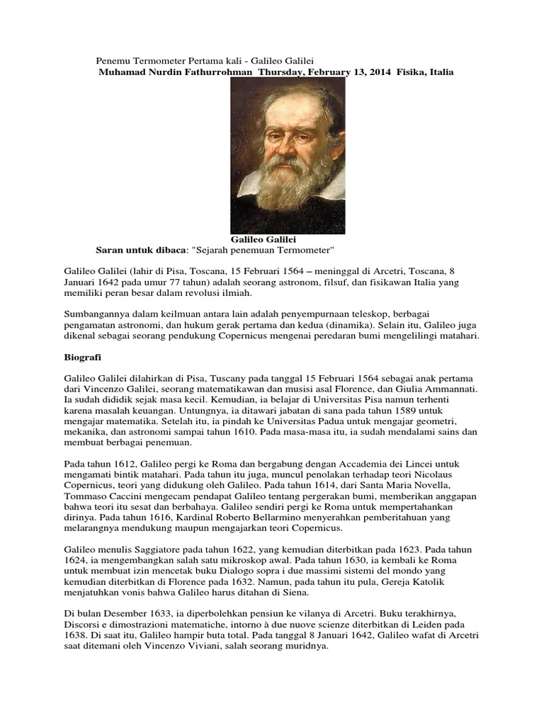 Galileo Galilei Penemu Termometer Universitas Malahayati