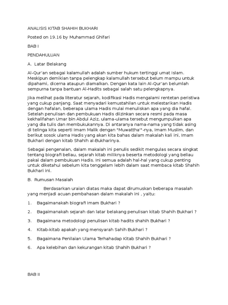 Biografi Imam Bukhari Wahdah Islamiyah