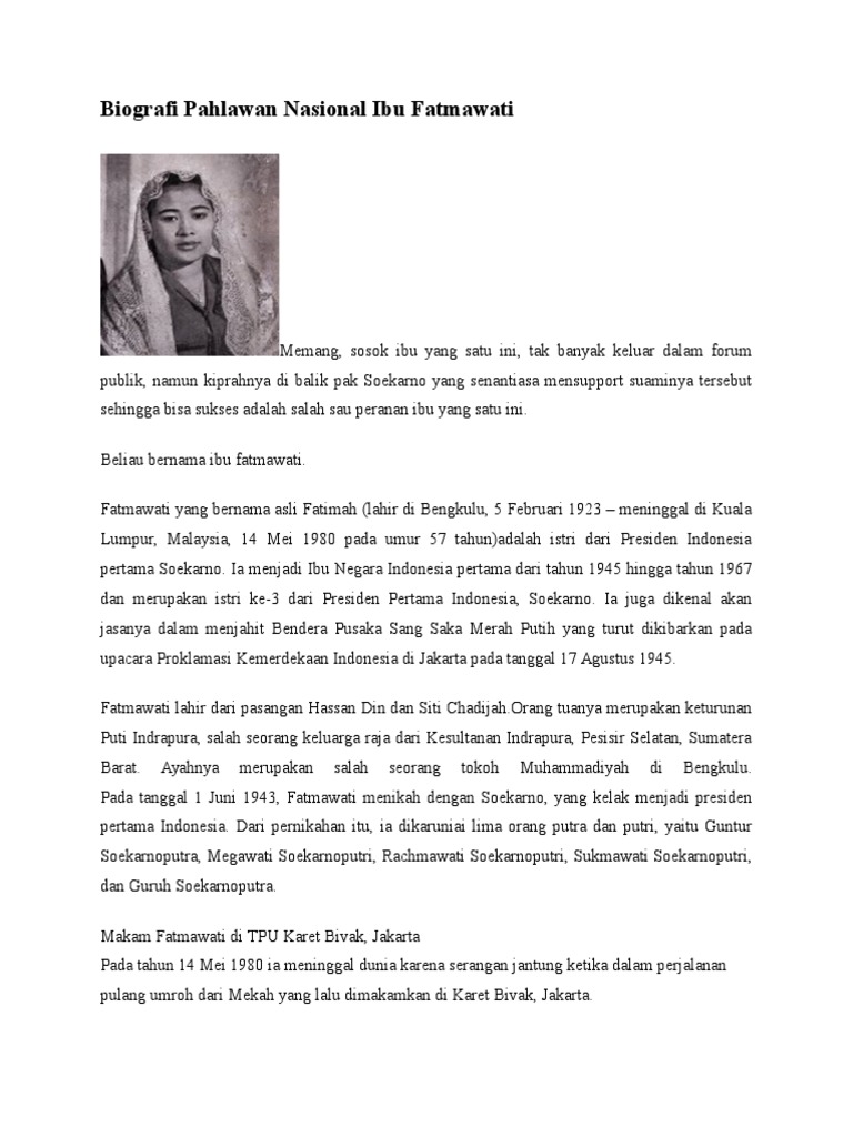 Biografi Pahlawan Nasional Ibu Fatmawati