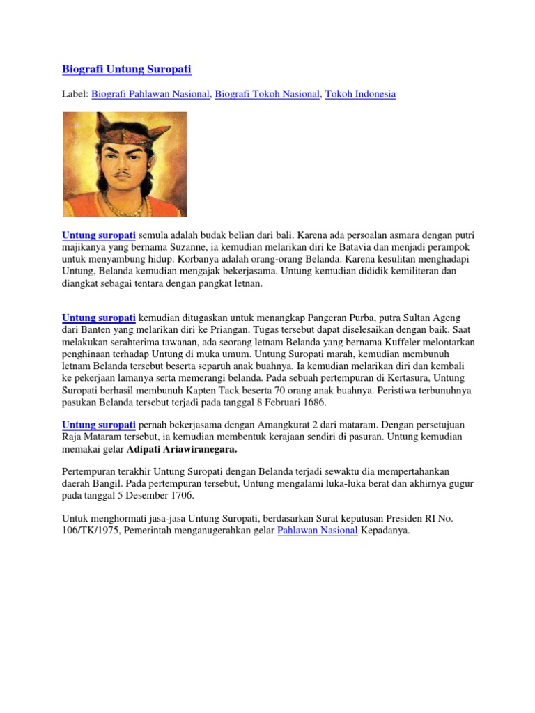 Bergelar kolonel di angkatan tentara Indonesia I Gusti Ngurah Rai memimpin resimen Ciung Wanara dalam melumpuhkan Netherlands-Indies Civil Administration NICA. Berikut profil dan biografi singkat I Gusti Ngurah Rai. Biografi Urip Sumoharjo - Pahlawan Nasional Indonesia Tampaknya keberuntungan kembali memihak Untung lantaran sang ayah Ayu Gusik Kusuma yang bernama Patih Nerangkusuma disebut anti VOC.