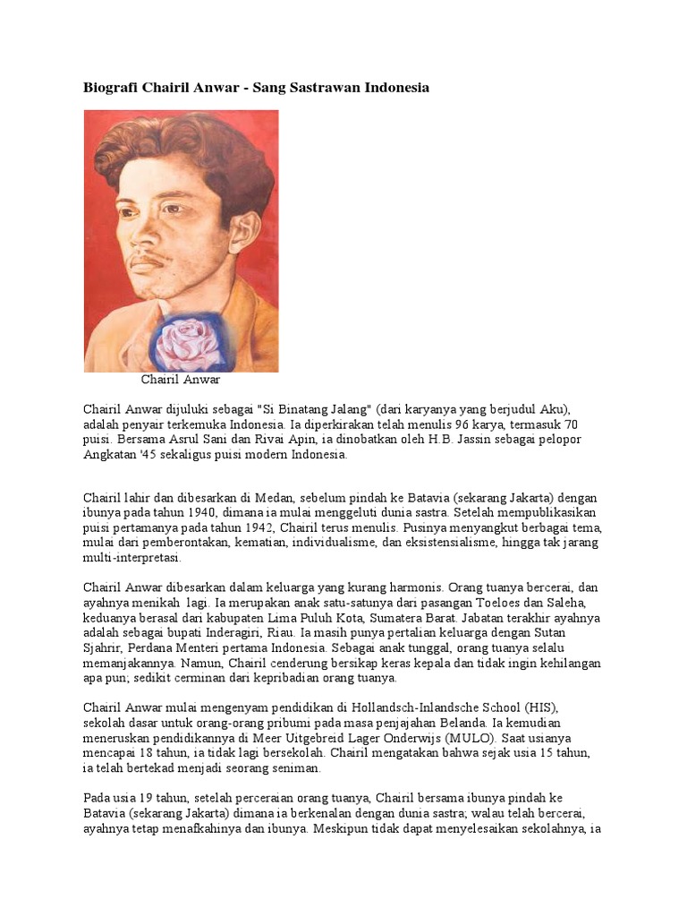 Biografi Chairil Anwar Dalam Bahasa Inggris