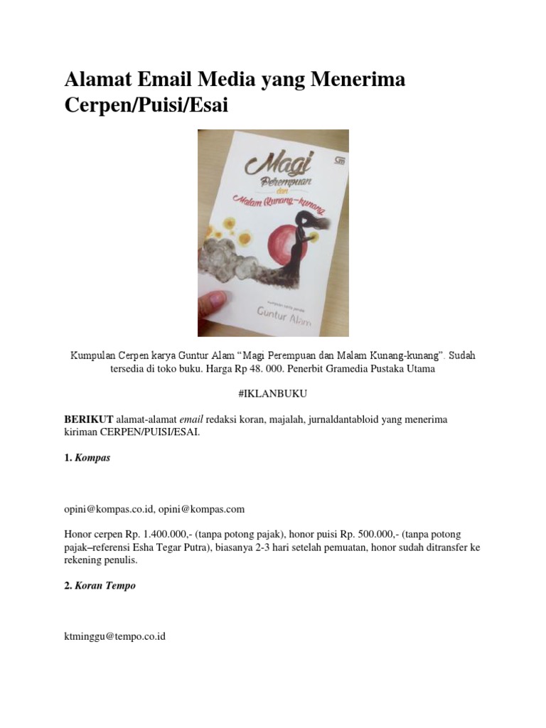Mengirim Cerpen Ke Media Massa Kumpulan Alamat E Mail Cerpen Media Se Indonesia