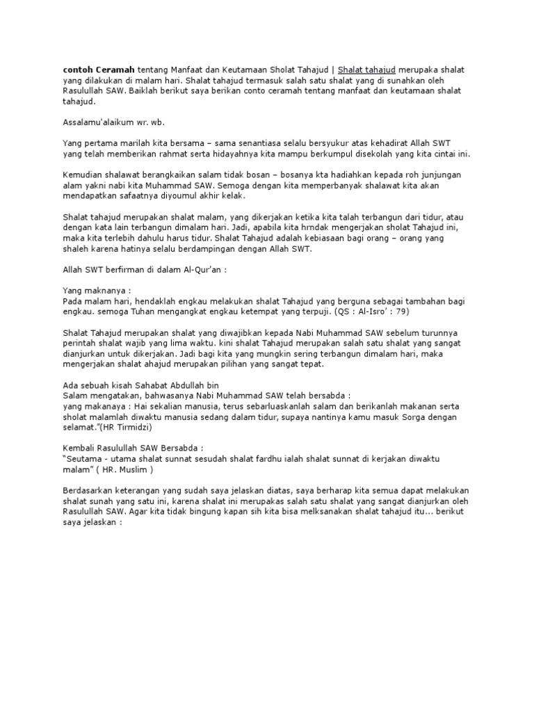 Contoh Ceramah Tema Manfaat Dan Keutamaan Sholat Tahajud Terbaru Jago Berpidato Apa Yang Kamu Cari Ada Disini