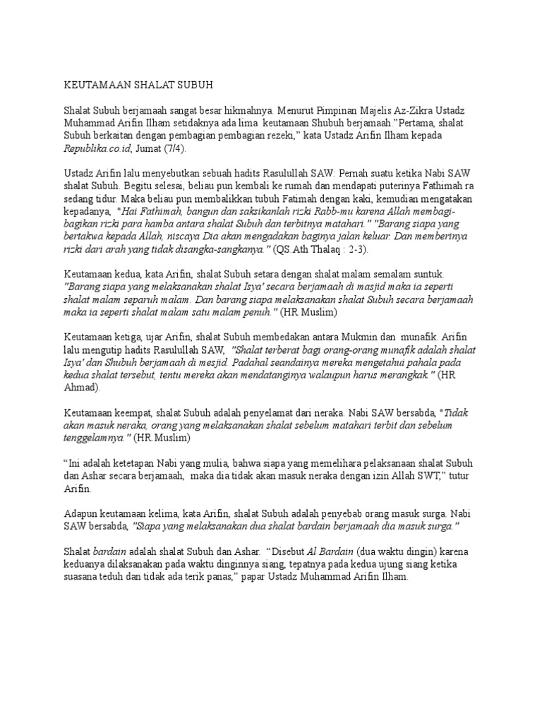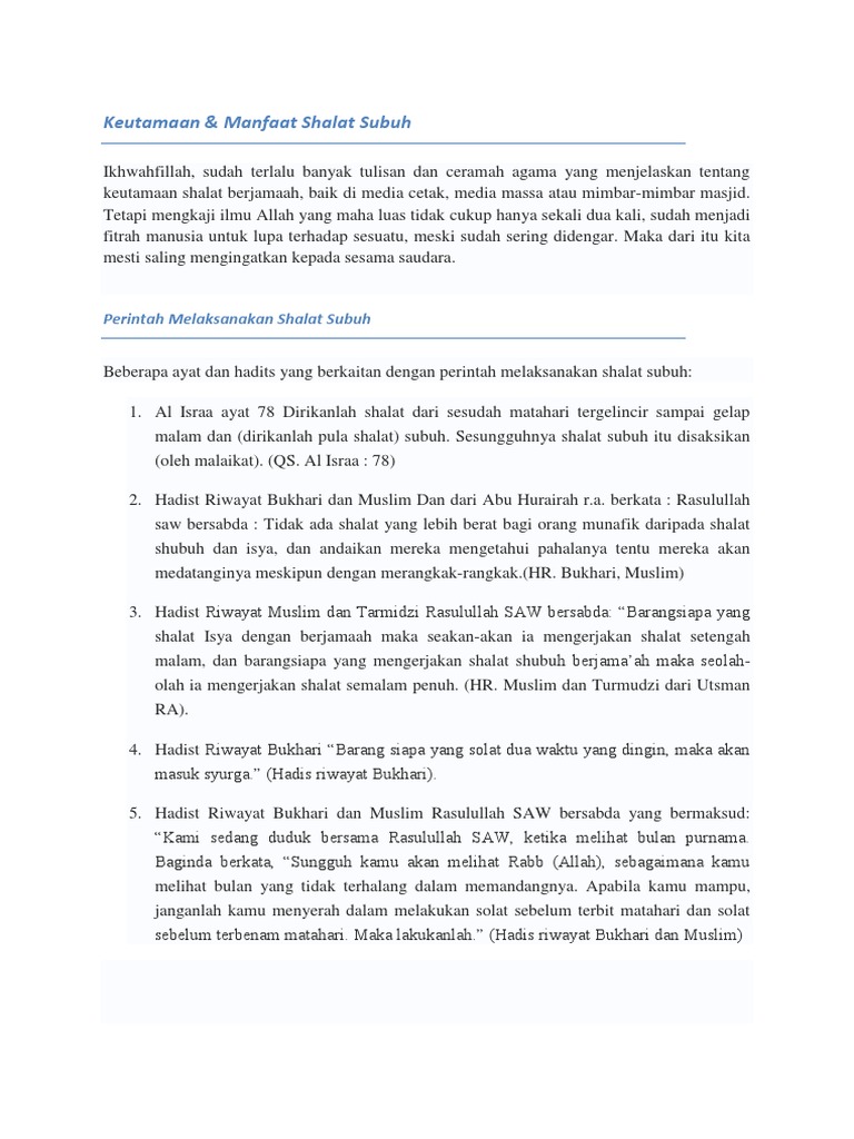 Keutamaan Shalat Subuh Berjamaah Dan Dua Rakaat Shalat Sunnah Sebelum Subuh Ardinur Com