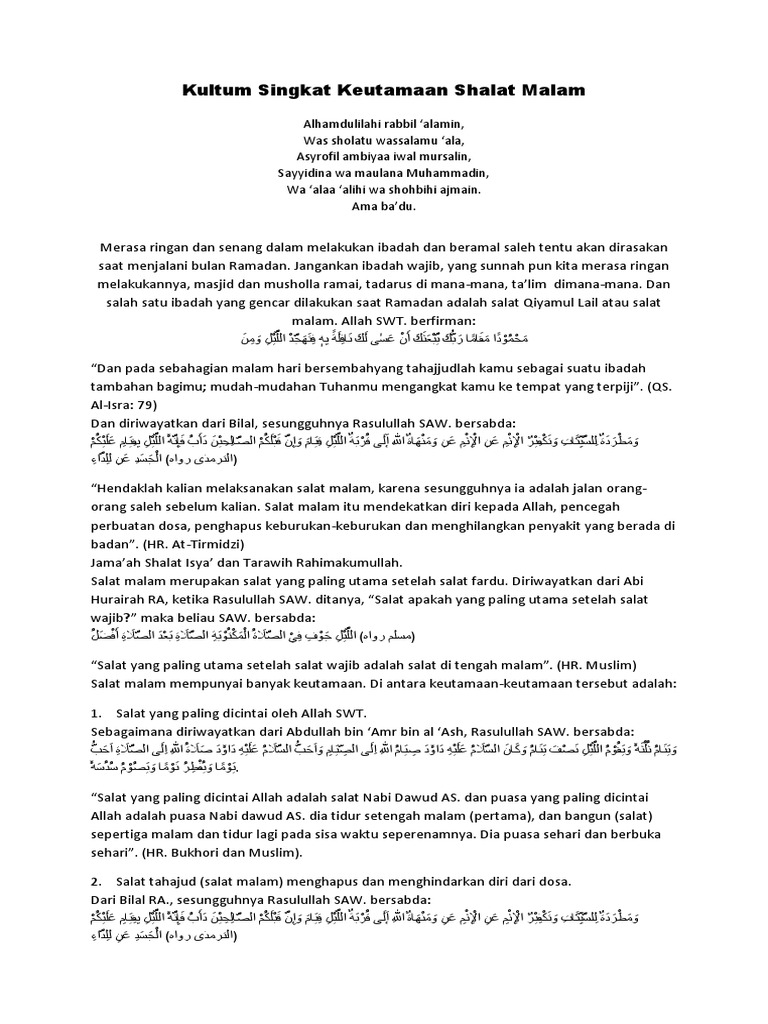 Doc Keutamaan Shalat Tahajud Ajeng Pipit Fitriani Academia Edu