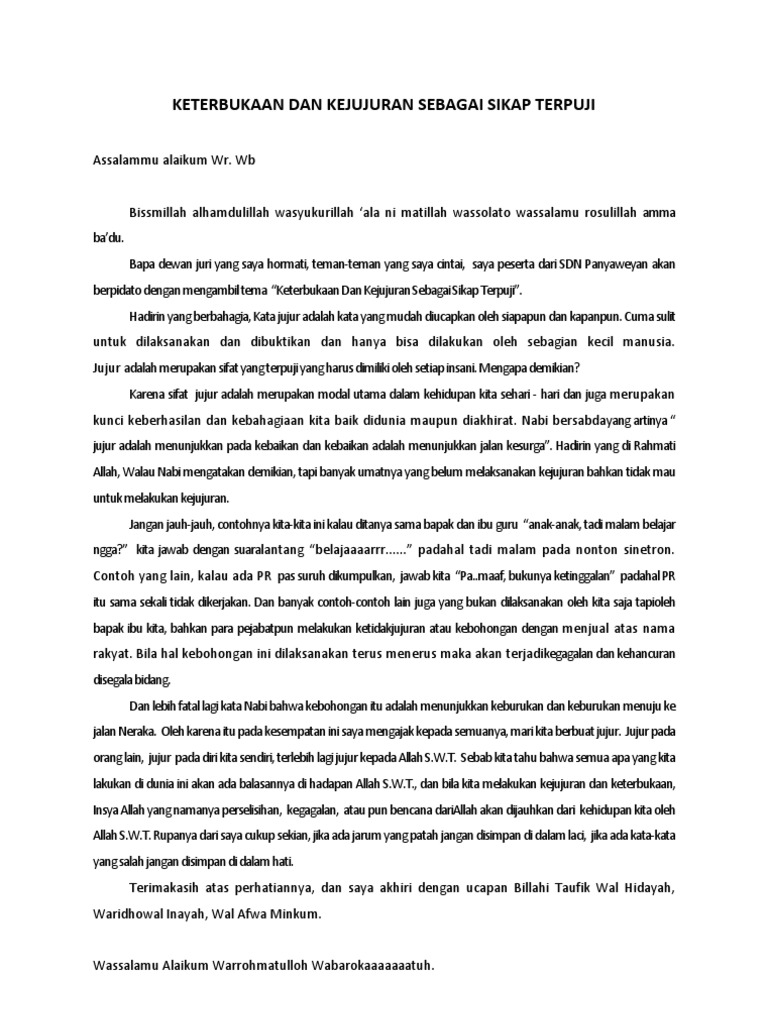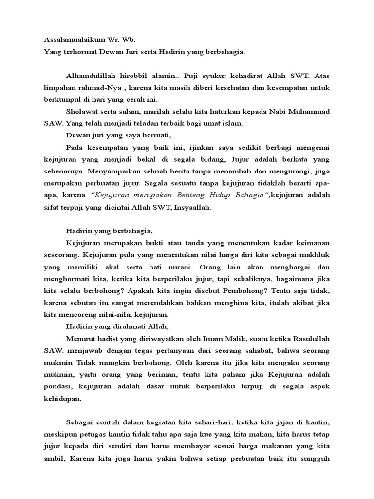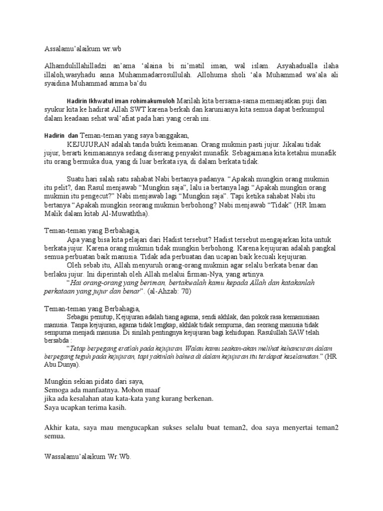 Dan hambaNya yang jujur maka kelak di hari kiamat akan disediakan tempat yang. Hal-hal baik yang harus diajarkan kepada anak. Contoh Pidato Singkat Bahasa Indonesia.