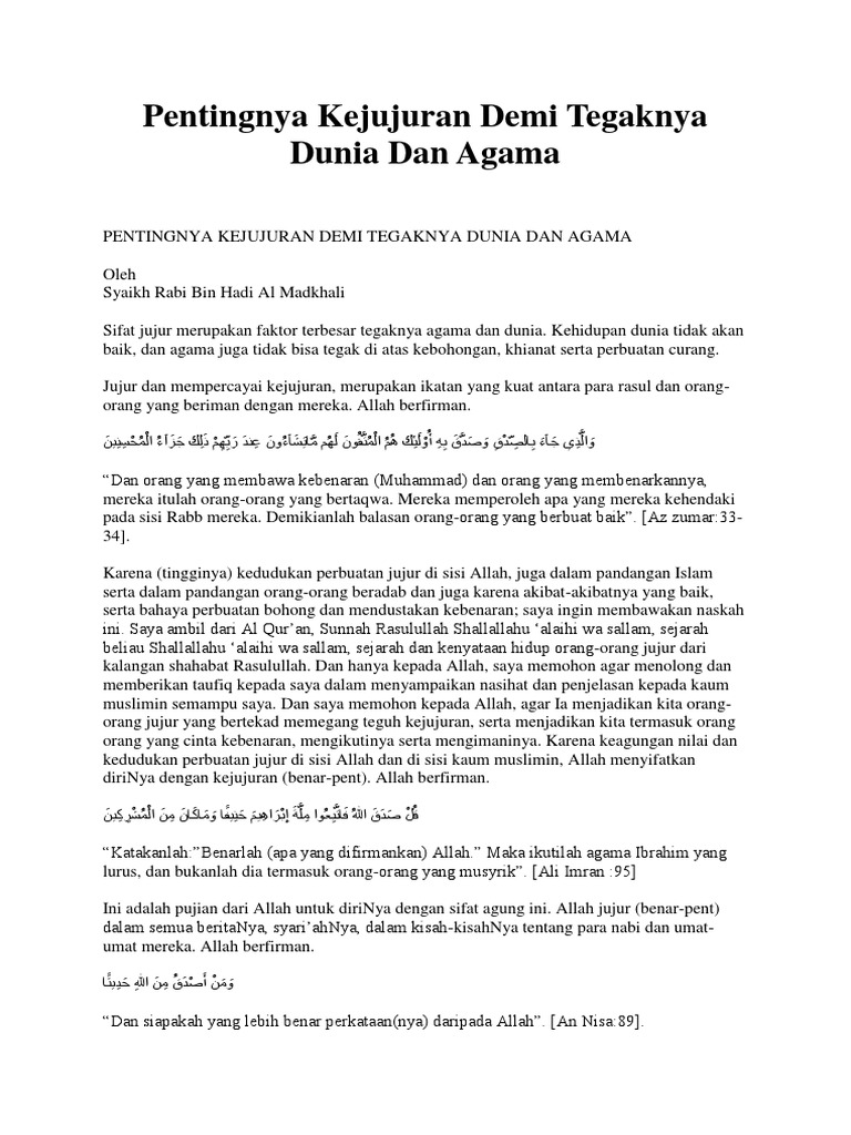 Teks Ceramah Agama Islam Tentang Kejujuran Contoh Dan Naskahnya