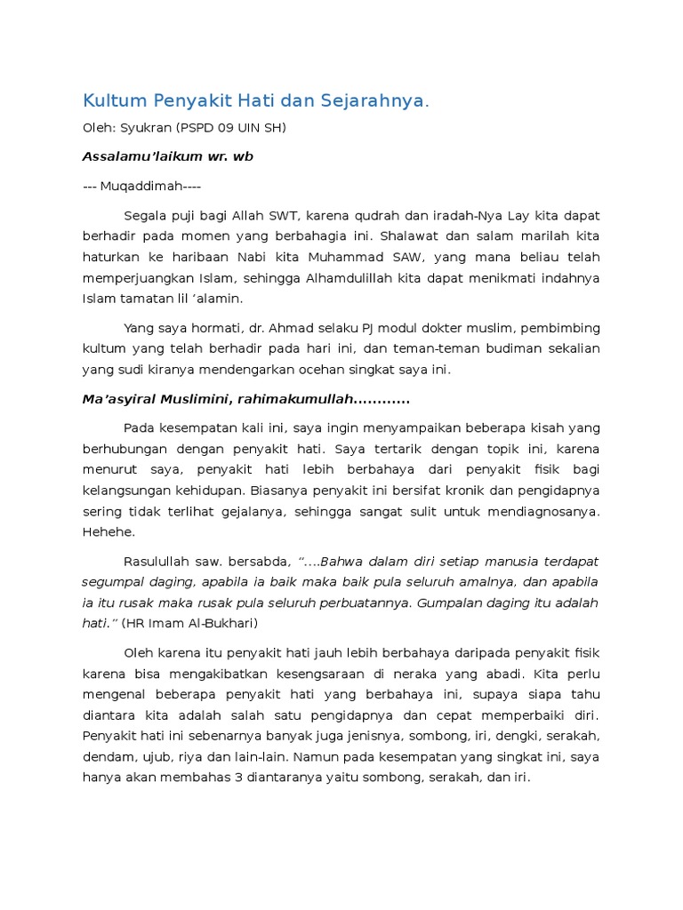 Demikian contoh ceramah ramadhan tentang keutamaan puasa bagi jasmani dan rohani karena kesehatan jasmani dan rohani sangat penting dalam melaksanakan kegiatan sehari-sehari termasuk dalam melaksanakan ibadah. Berikut pembahasan Ceramah Tentang Hati Manusia. MA - Semua harus tau cara membagi harta warisan.