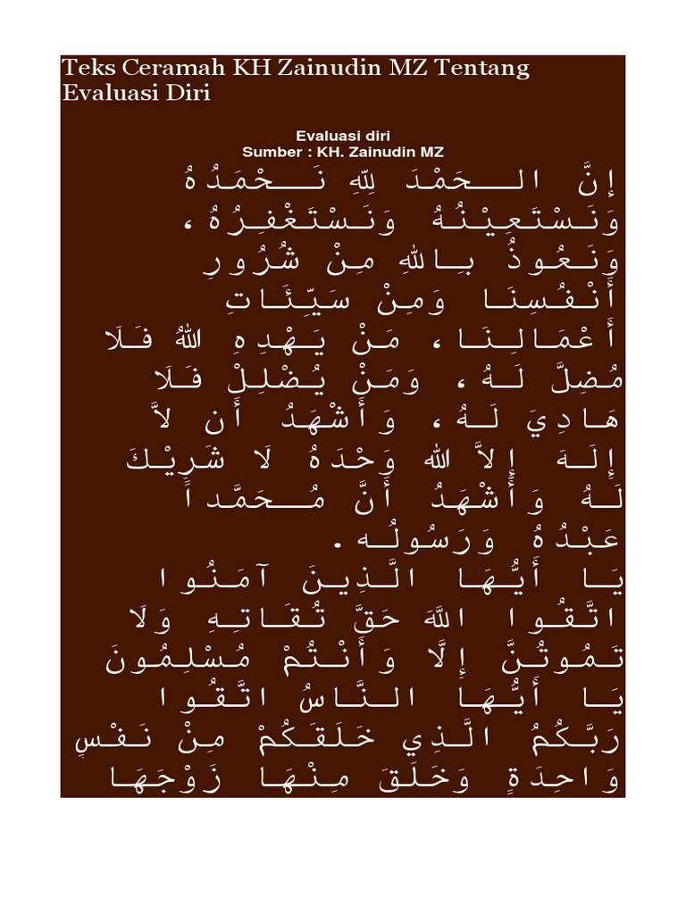 Teks Ceramah Kh Zainudin Mz Tentang Evaluasi Diri