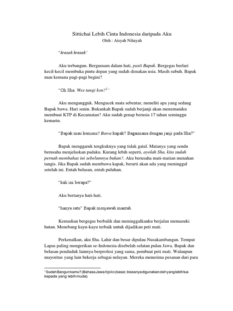Contoh Cerpen Cinta Tanah Air Indonesia Sketsa