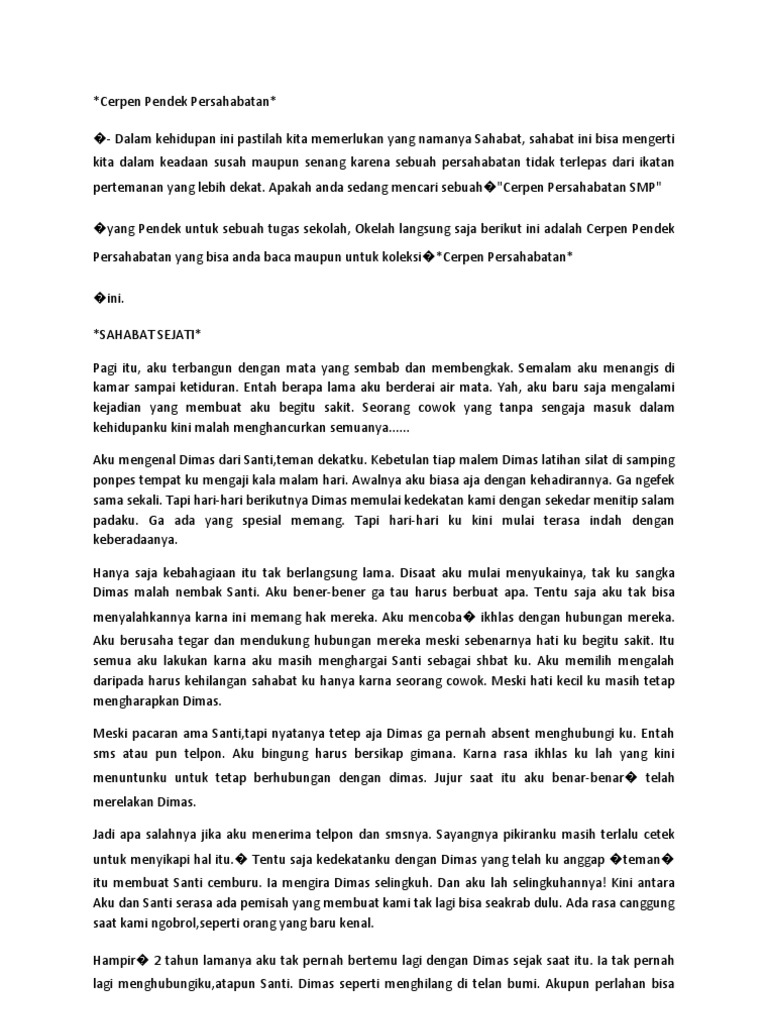 Berikut ini beberapa cerpen persahabatan yang bisa dibaca. Cerpen Persahabatan Cerpen Remaja Lolos moderasi pada. Contoh Cerpen Singkat Persahabatan source.