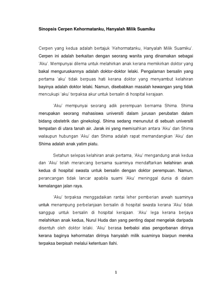 Sinopsis Cerpen Kehormatanku Hanyalah Milik Suamiku