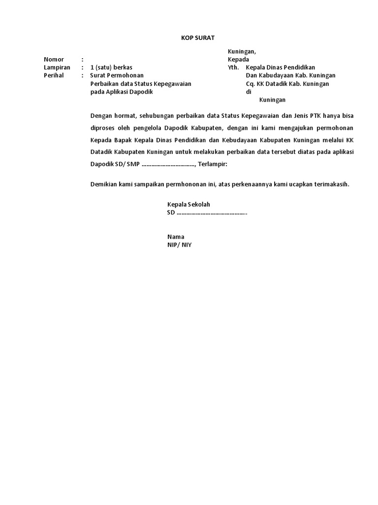 406134142 Dapodik 2019 Contoh Surat Pengajuan Perubahan Satus Kepegawaian P