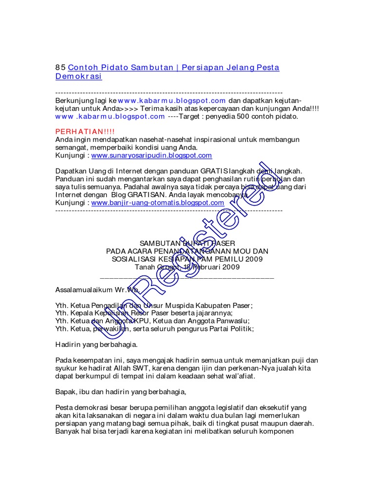 Contoh Pidato Bahasa Indonesia Dengan Tema Pentingnya Teks Pidato. 85 Contoh Pidato Sambutan - Persiapan Jelang Pesta Demokrasi KAUM MURBA INDONESIA. Demokrasi dan Implementasi Peranan Hukum Pidana dalam Proses.