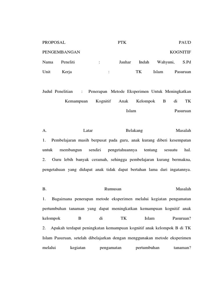 Doc Proposal Taman Kanak Kanak Tk Indra Sky Academia Edu