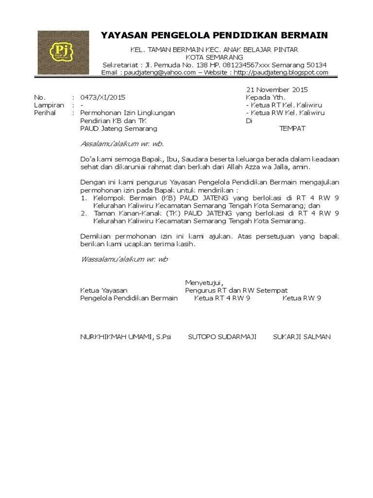 Surat Izin Lingkungan Pendirian Tk Kb Tpa Dari Rt Rw Paud Jateng