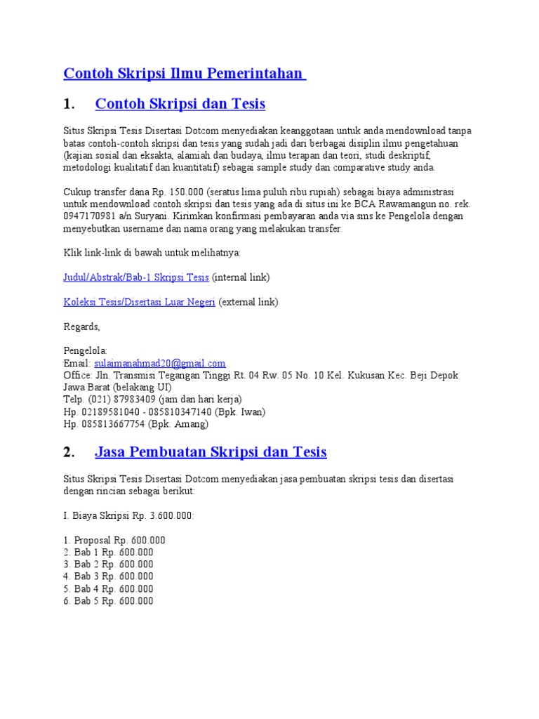 Contoh Skripsi Ilmu Pemerintahan Contoh Soal Dan