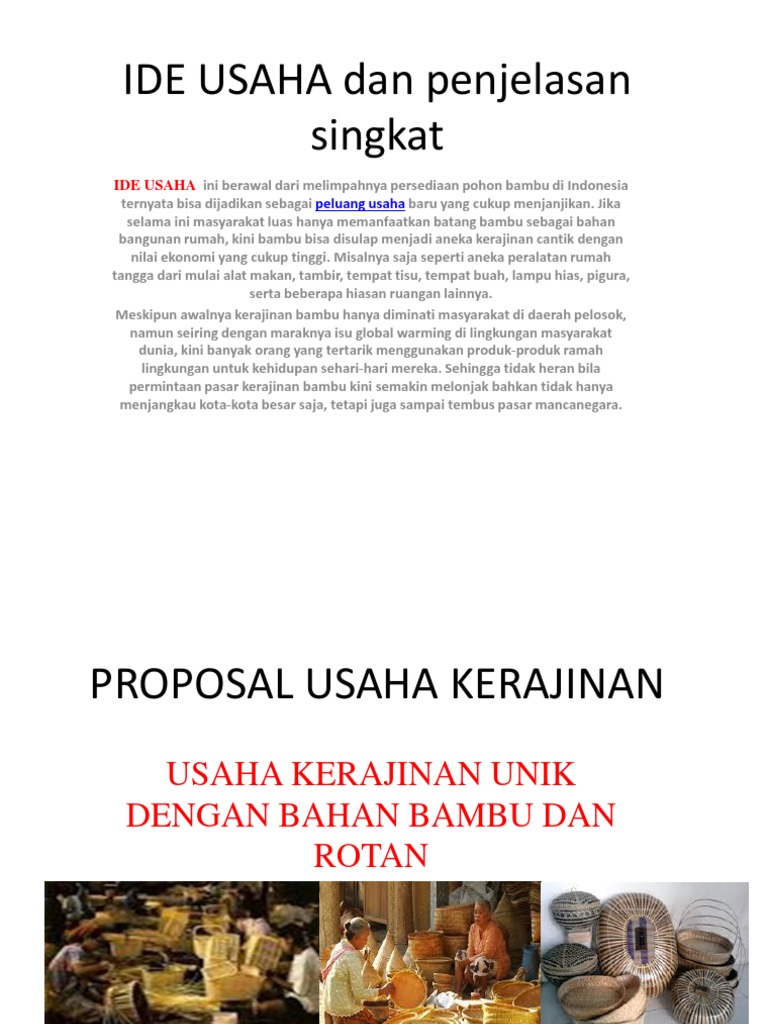 Contoh Proposal Usaha Berikut ini ialah contoh proposal usaha yang benar dan baik. Kerajinan Fungsi Hias 1. Selain bahan pembuatannya mudah ditemukan kerajinan ini ramah lingkungan.