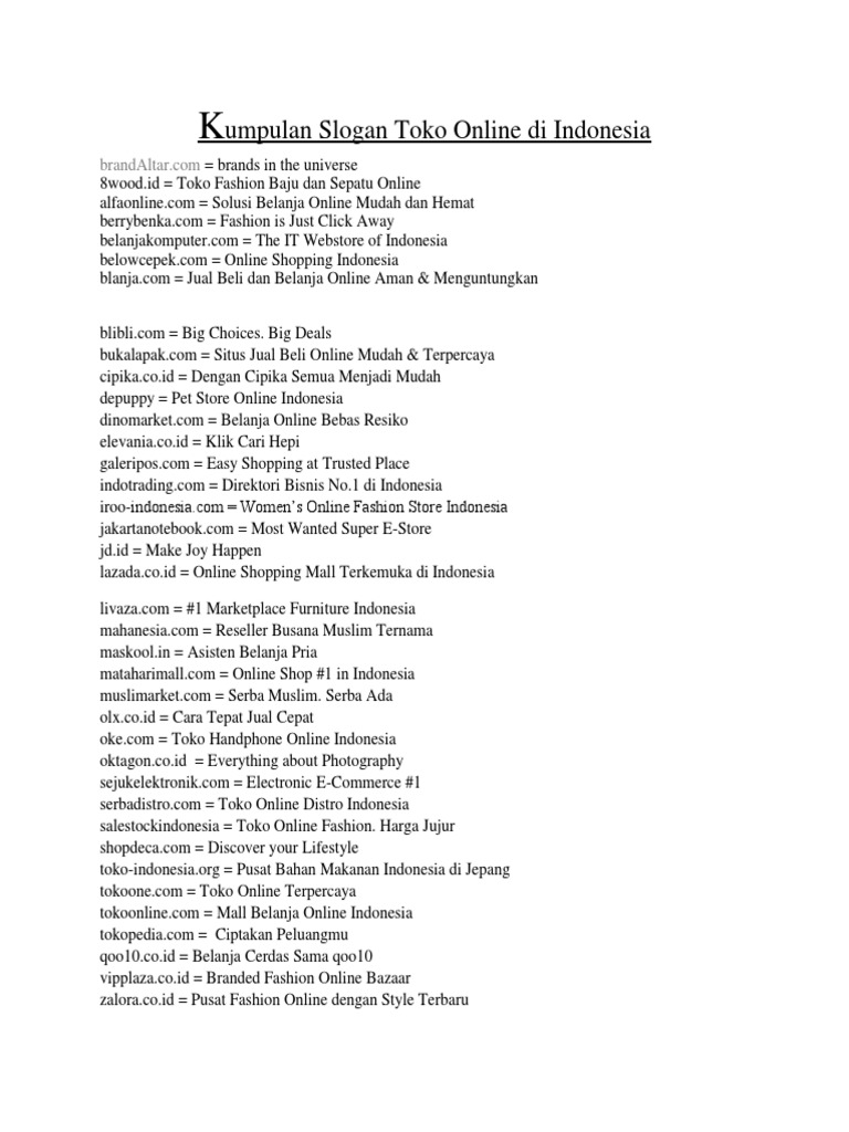 Kumpulan Slogan Atau Tagline Toko Online Indonesia Trade Retailing