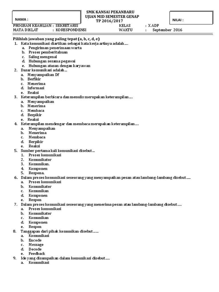 Contoh soal essay korespondensi dan jawabannya. Soal Bahasa Indonesia Kelas 10 Semester 1 2 Dan Jawabannya Daftar ki dan kd ipa smp mts kurikulum 2013 revisi 2017 2018 kelas 7 8 dan 9. Contoh soal debat dan jawabannyaContoh Soal Essay Mid Semester. I Thank you very much for the professional job you do.