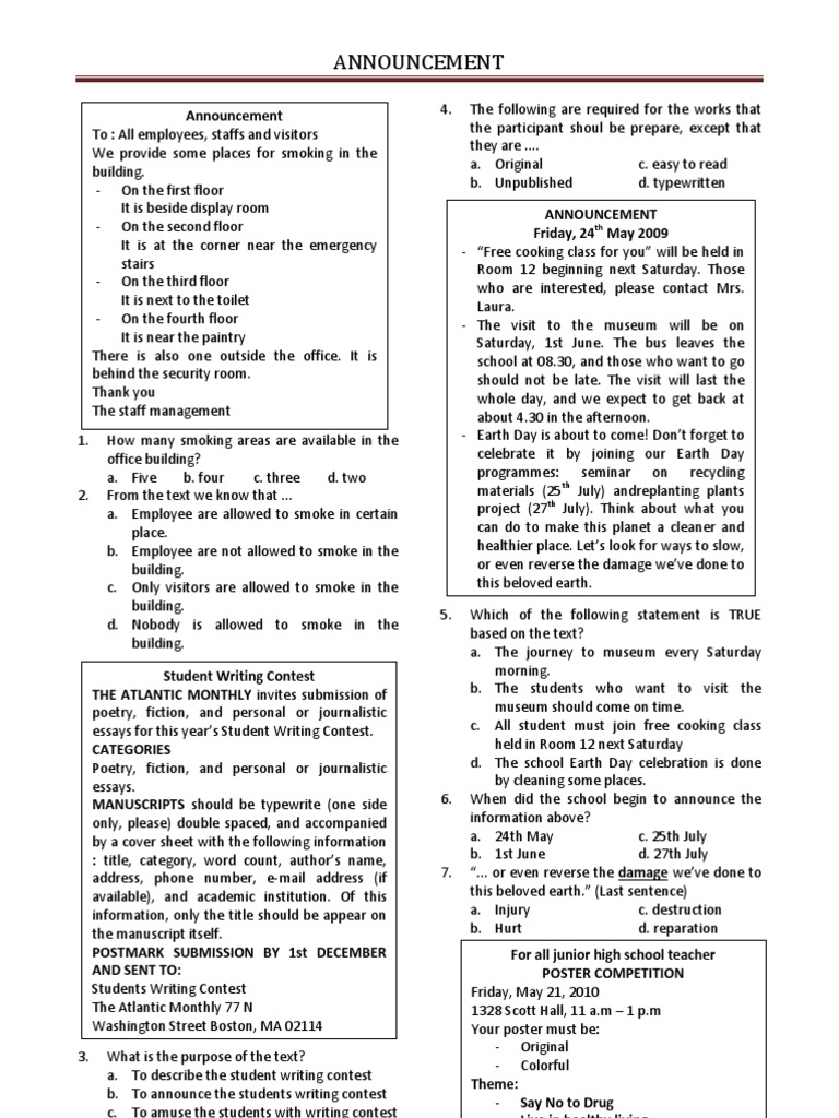 59 Contoh Soal Teks Announcement Dan Jawaban English Admin