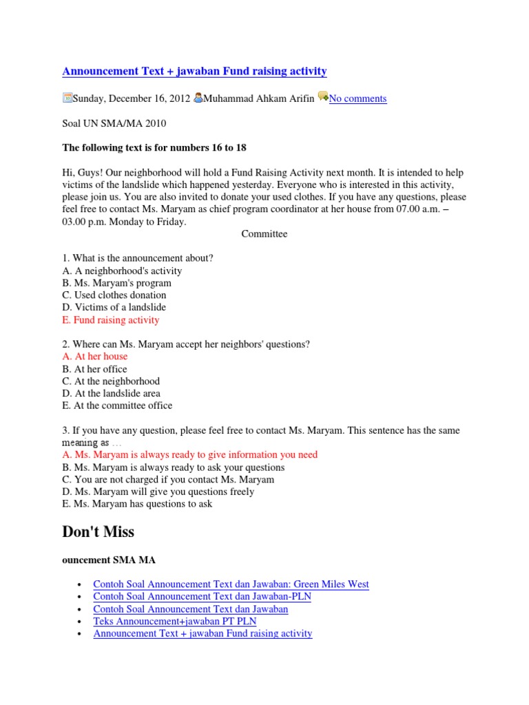 Kumpulan Soal Announcement Text Sma Dan Pembahasan Paja Tapuih
