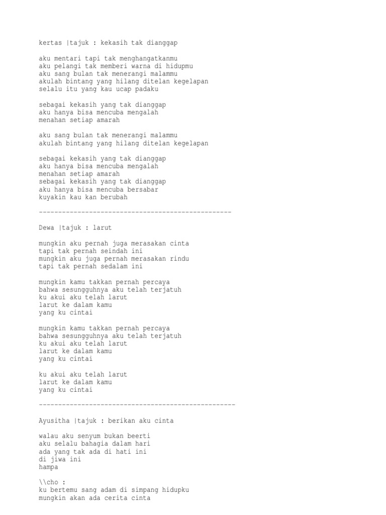 Lirik lagu Kekasih Yang Tak Dianggap Kertas Lyrics Kekasih Yang Tak Dianggap Aku mentari Tapi tak menghangatkan mu Aku pelangi Tak memberi warna dihidupmu Aku sang bulan Tak menerangi malammu Akulah bintang. A blast from the past. Download lagu Kertas Band Kekasih Yang Tak Dianggap MP3 dapat kamu download secara gratis di Laguto.
