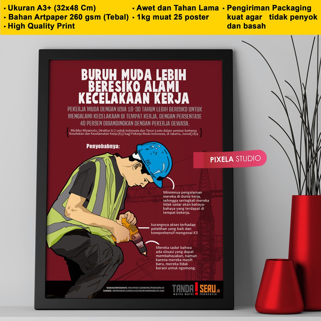 Poster K3 Safety Poster Kesehatan Keselamatan Kerja Buruh Muda Berisiko Kecelakaan Kerja Lebih Besar Shopee Indonesia