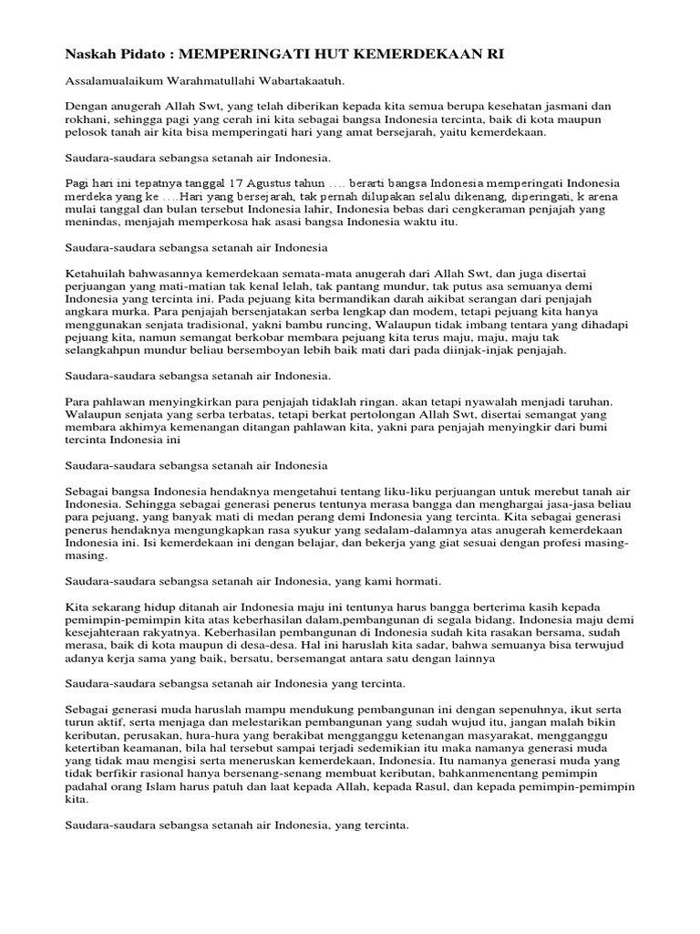 Contoh Pidato A4 Pidato Peringatan Hut R 1