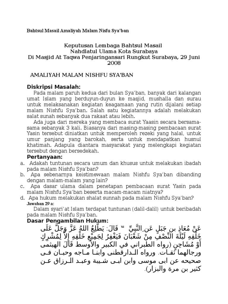 معاشر المسلمين رحمكم الله. An-Nasai An-Nasai Wonten ing kitab Ma Dza fi Syaban karyanipun Sayyid Muhammad bin Alawi Al-Maliki nyebataken tigang peristiwa penting saklintunipun malem Nishfu Syaaban engkang ngrubah beragamanipun tyang muslim. Bulan turunnya Allah SWT ke muka bumi.