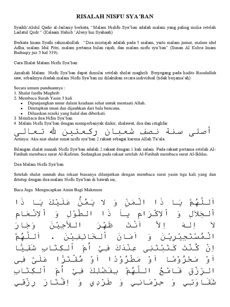 Pada Bulan Syaban juga terdapat kejadian yang agung yang menunjukkan keagungan Nabi Muhammad saw yaitu pergantian kiblat atau. Apakah Ada Doa Khusus di Malam Nisfu Syaban. Berpegang pada hadits Rasulullah saw sebaiknya ibadah malam Nisfu Syaban ini dilakukan secara individual tidak berjamaah.