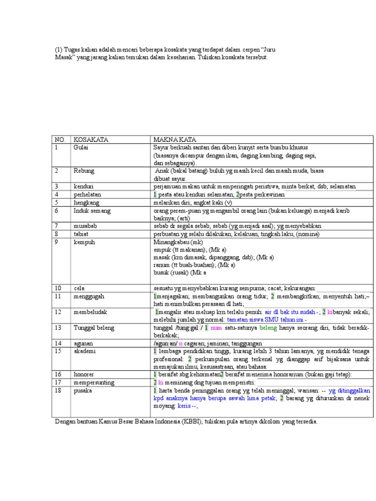 7 Tugas 2 Membedah Struktur Teks Cerpen Juru Masak. Dengan bantuan Kamus Besar Bahasa Indonesia KBBI. Buku ini merupakan buku siswa yang dipersiapkan Pemerintah dalam rangka implementasi Kurikulum 2013Buku siswa ini disusun dan ditelaah.