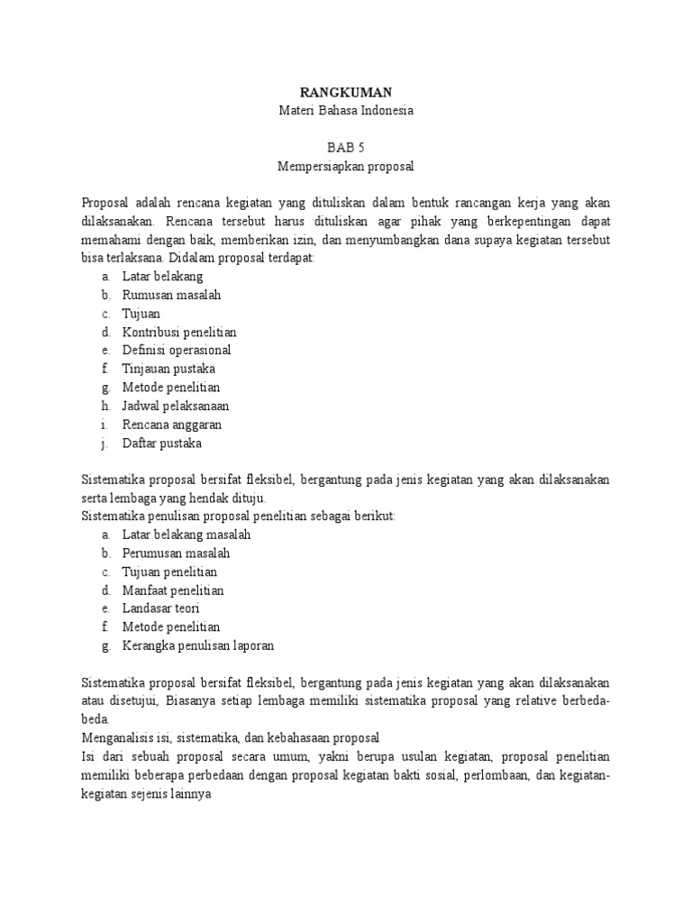 Materi Pelajaran Bahasa Indonesia Proposal
